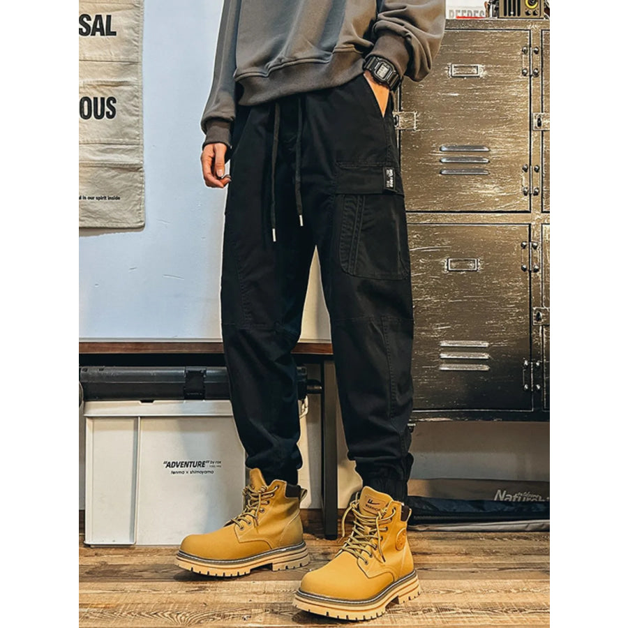 Men's Plus Size Drawstring Pants with Cargo Pockes