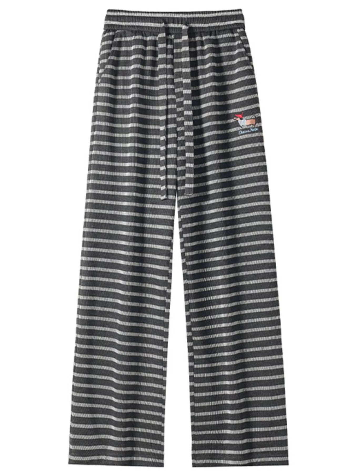 Men's Plus Size Striped Wide Leg Pants with Drawstring