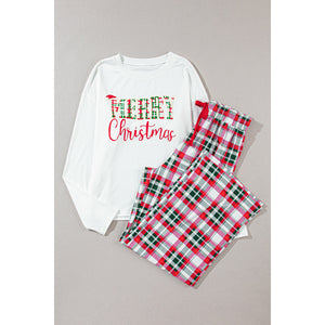 MERRY CHRISTMAS Round Neck Top and Plaid Pants Set