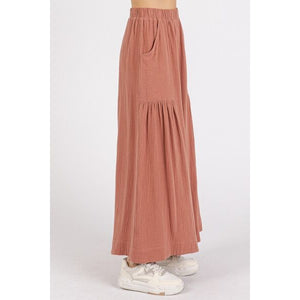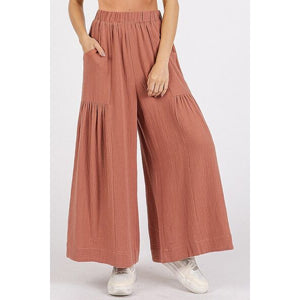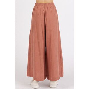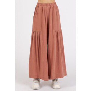 The Gauze Elastic Waist Pleated Wide Leg Pants are a breezy and stylish choice for warm weather. Made from lightweight gauze fabric, these pants are comfortable and airy. The pleated detailing adds texture and movement to the design. With an elastic waistband, they offer a comfortable and flexible fit. Pair them with a tank top and sandals for a relaxed and chic summer outfit.