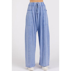 The Mineral Wash Elastic Waist Barrel Leg Baggy Pants are a trendy and comfortable choice for casual wear. The mineral wash gives them a unique and vintage look. The elastic waistband ensures a relaxed and adjustable fit. With a barrel leg design, these pants offer a stylish and laid-back vibe. Pair them with a simple top and sneakers for a cool and effortless outfit.