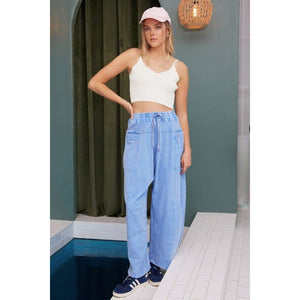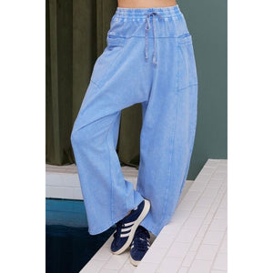 Mittoshop Mineral Wash Elastic Waist Baarrel Leg Baggy Pants