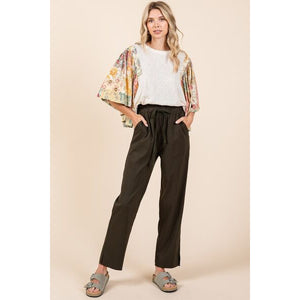 Mittoshop Paperbag Waist Tapered Straight Pants