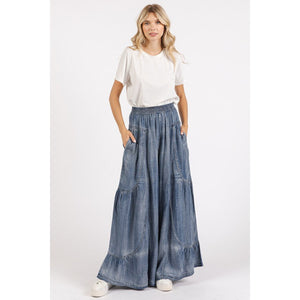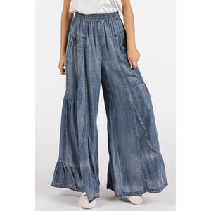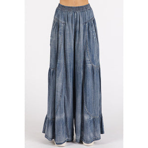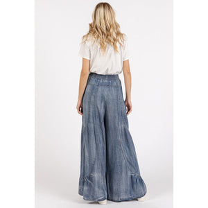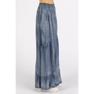 Mittoshop Washed Chambray Tier Detail Wide Leg Pants