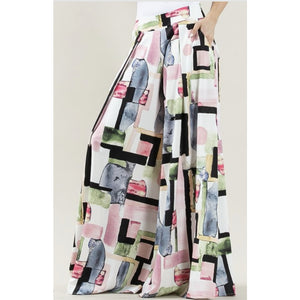 New! Printed Palazzo Pants with Pockets - Watercolour