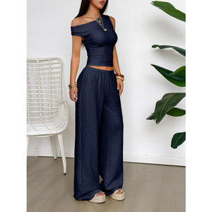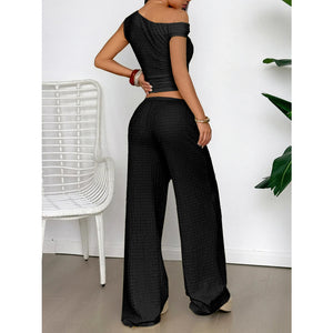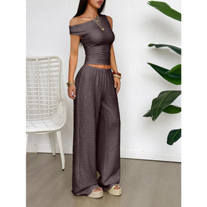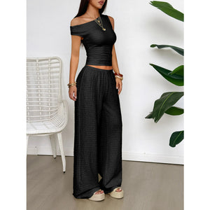 One Shoulder Top and Wide Leg Pants Set