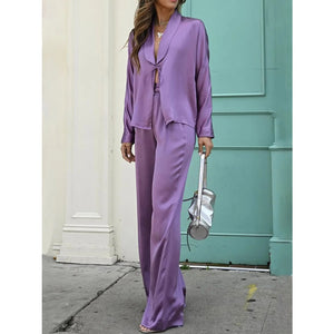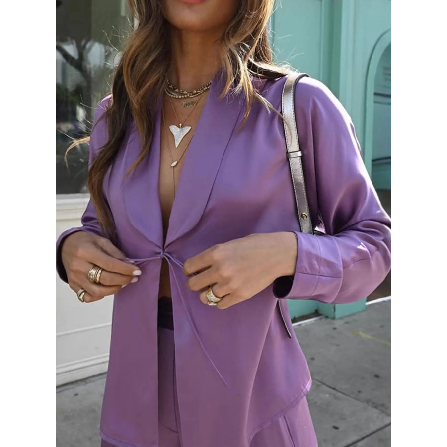 Open Front Tied Top and Pants Set