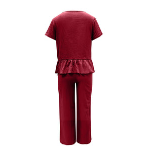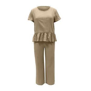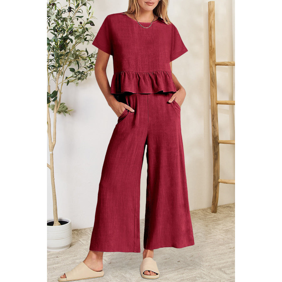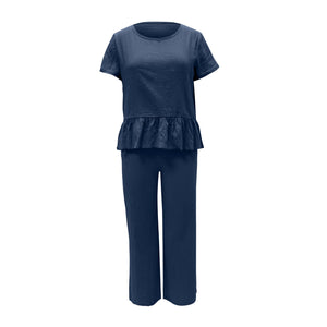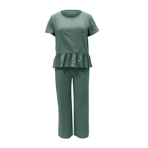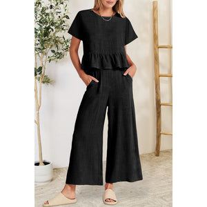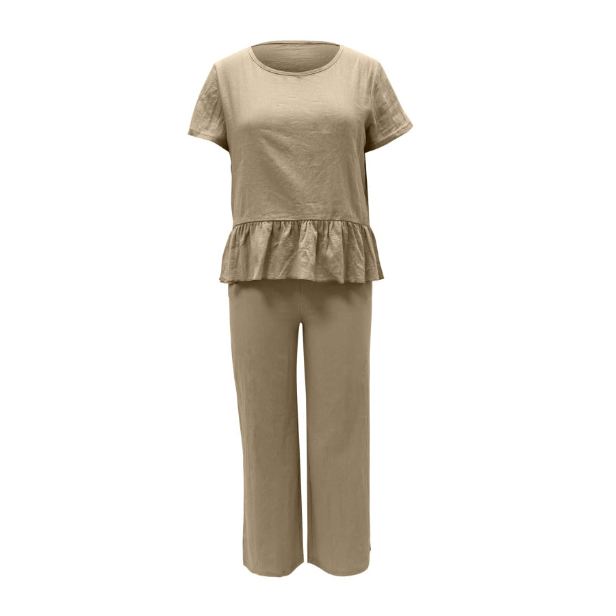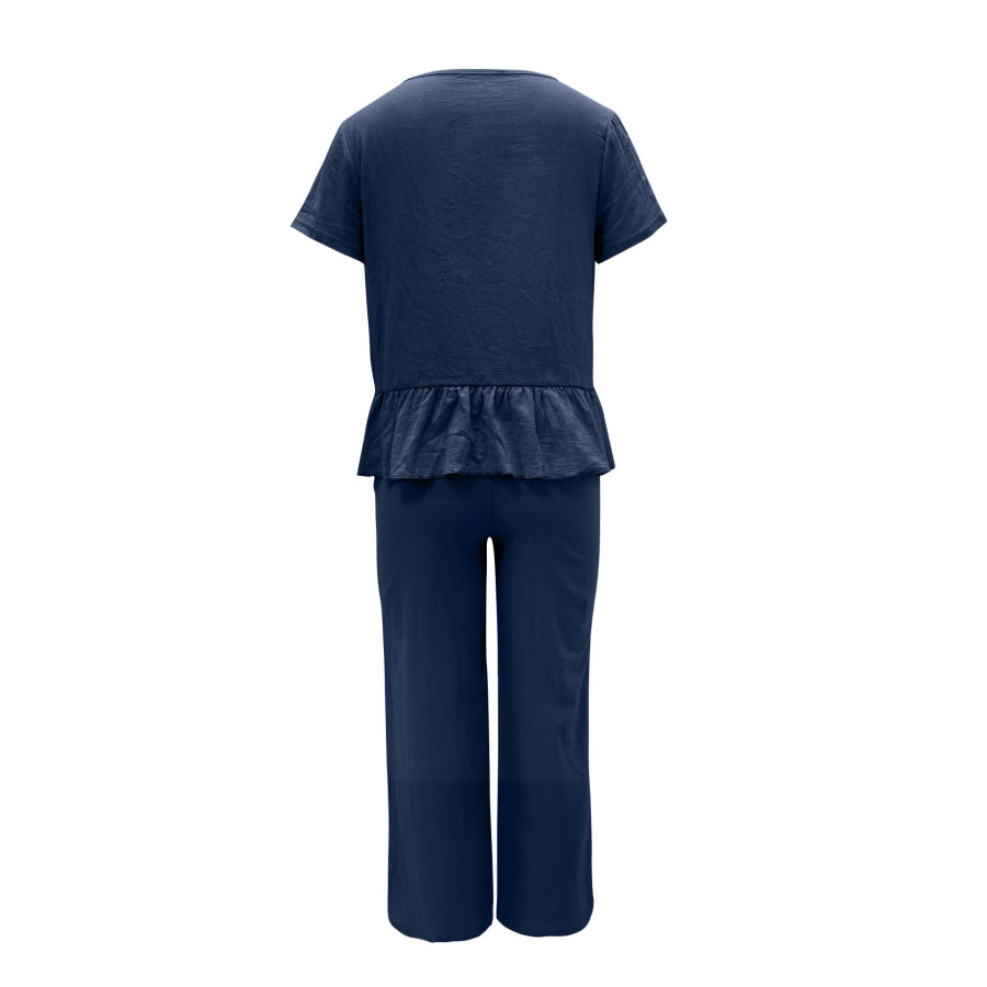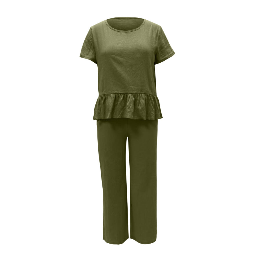 Peplum Round Neck Short Sleeve Top and Pants Set