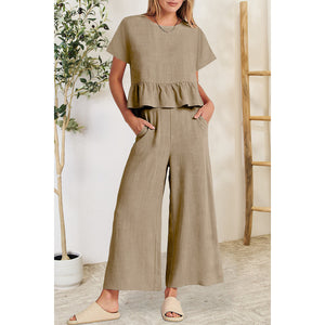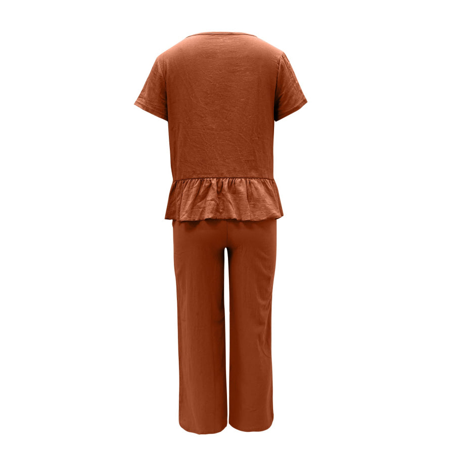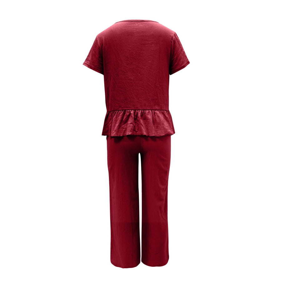 Peplum Round Neck Short Sleeve Top and Pants Set