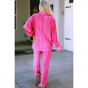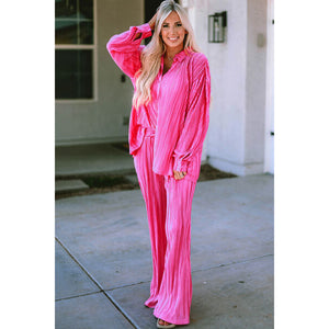 Pleated Button Up Shirt and Wide-Leg Pants Set