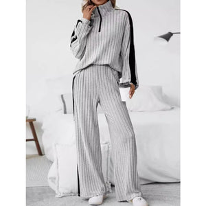 Plus Size Half Zip Long Sleeve Top and Pants Set
