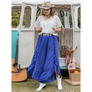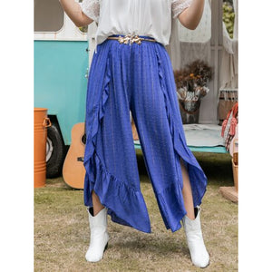 Plus Size Swiss Dot Ruffled Wide Leg Pants