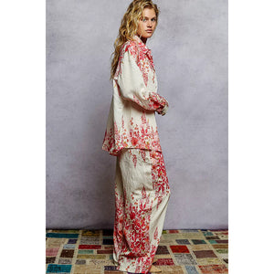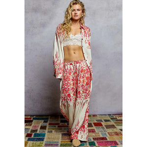 POL Floral Printed Woven Wide Leg Drawstring Pants