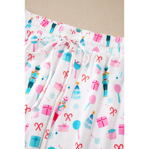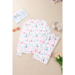 Printed Round Neck Long Sleeve Top and Pants Lounge Set
