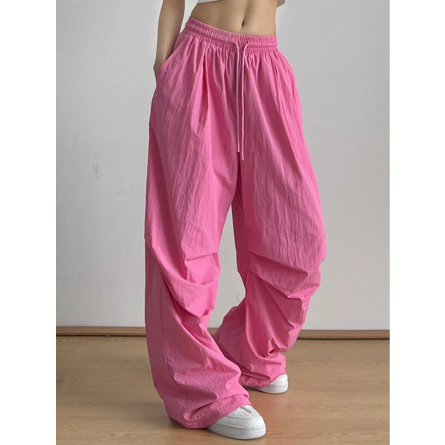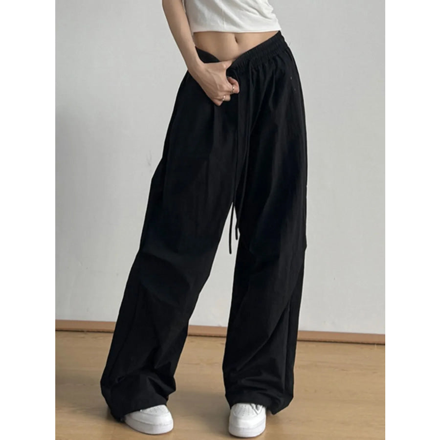 Relaxed Wide Leg Casual Pants with Drawstring