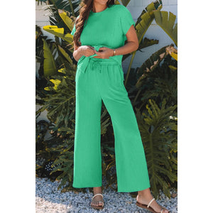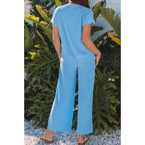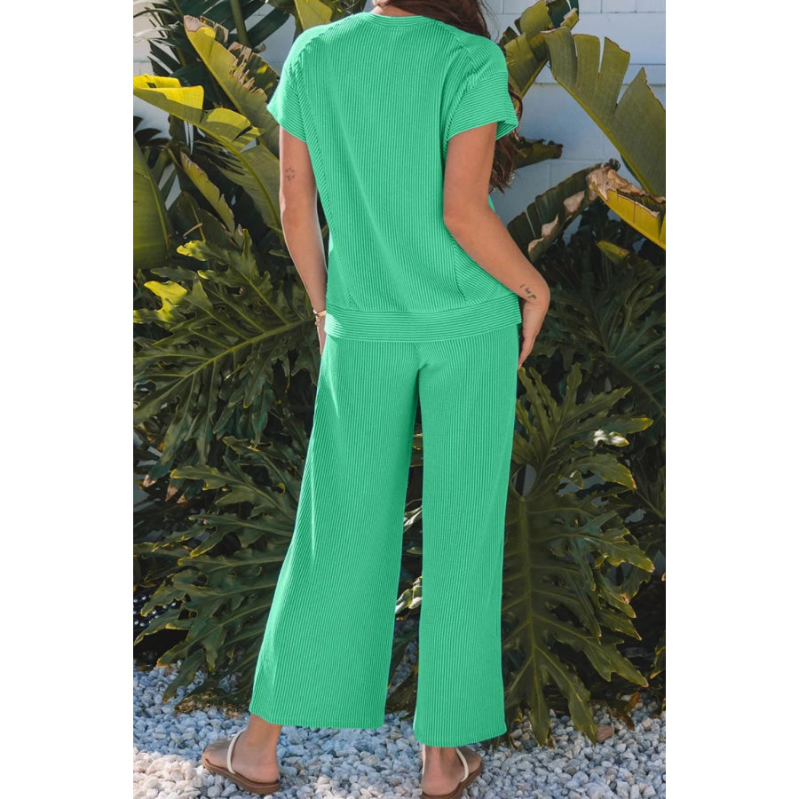 Ribbed Knit Round Neck Top and Pants Casual Set
