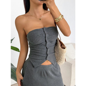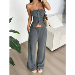 Ribbed Knit Strapless Crop Top and Pants Set