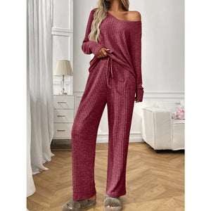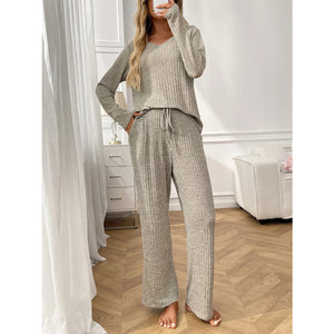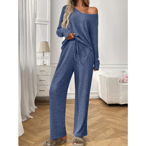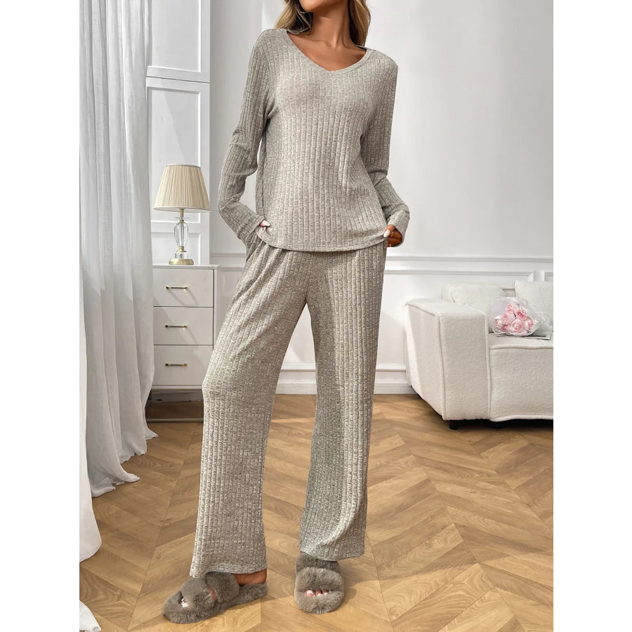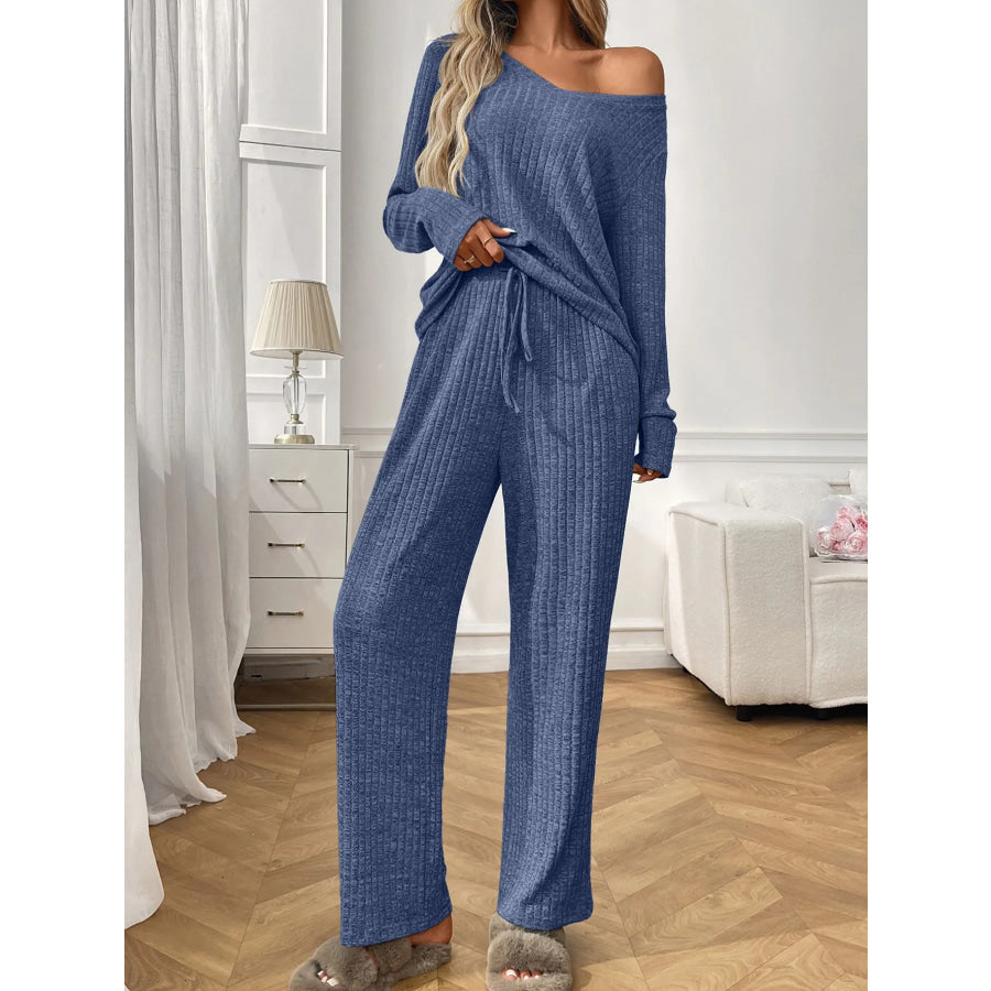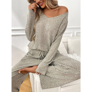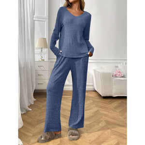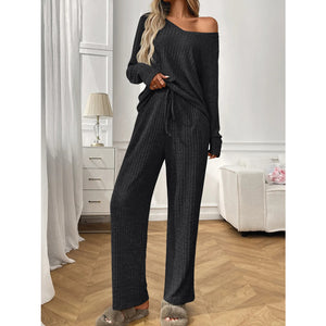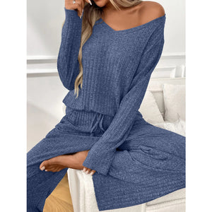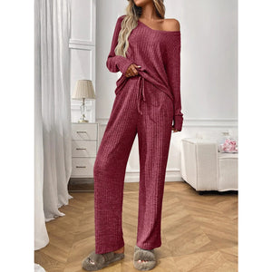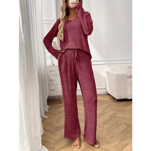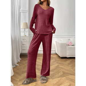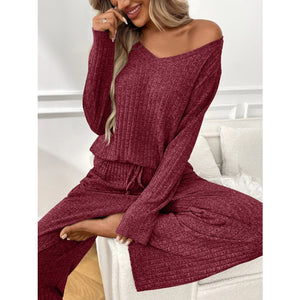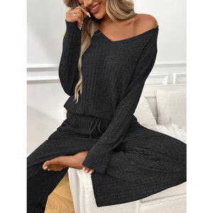 Ribbed Long Sleeve Top and Pants Lounge Set