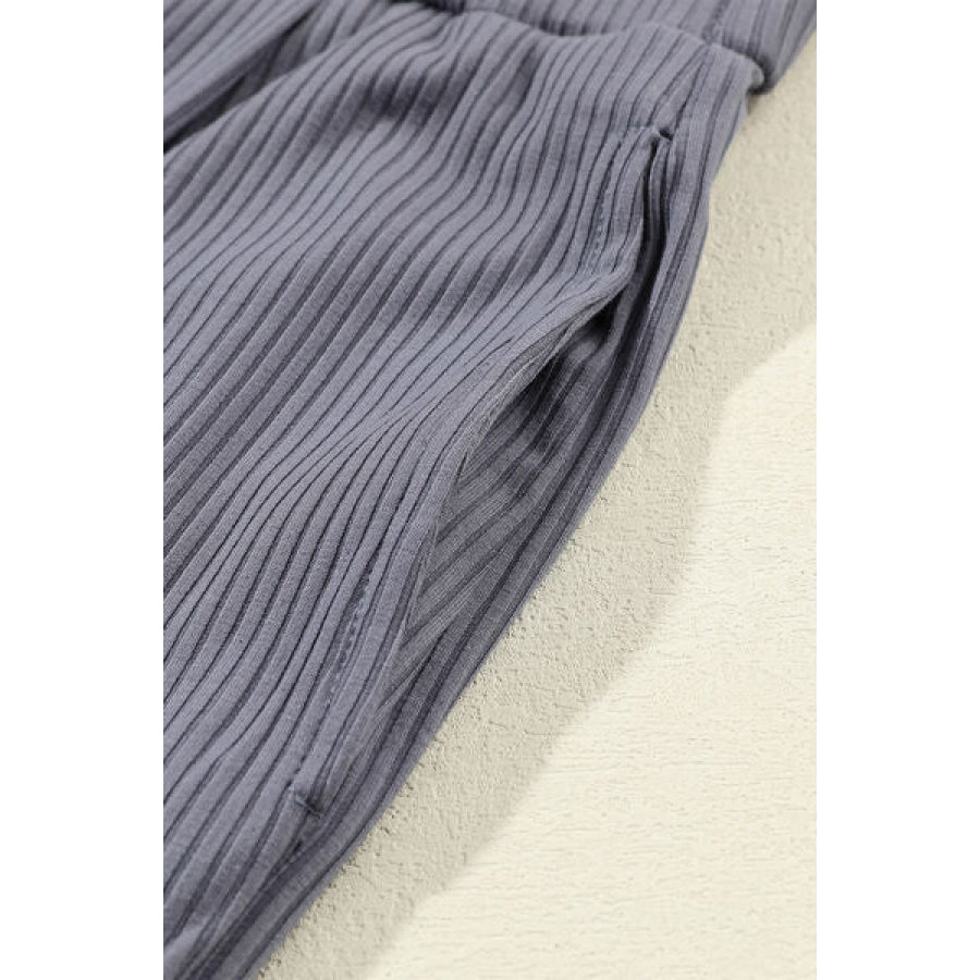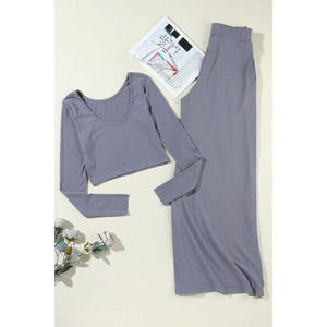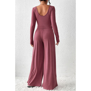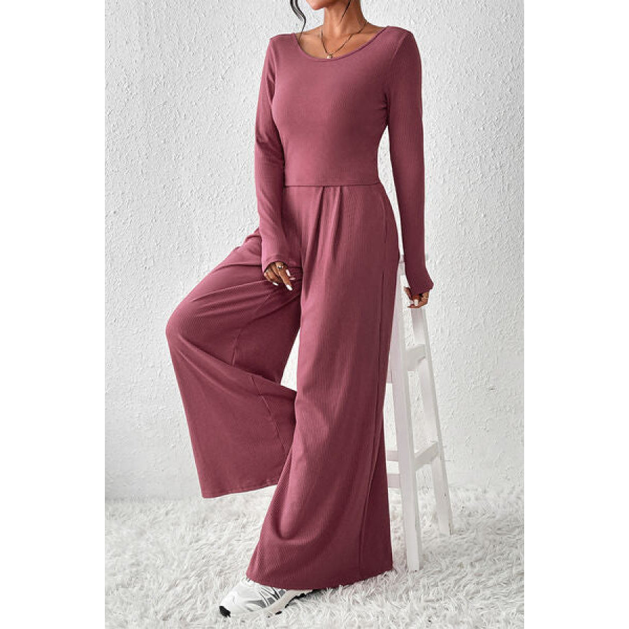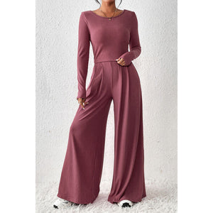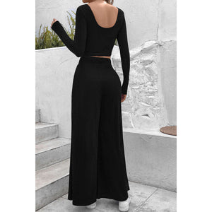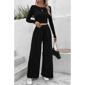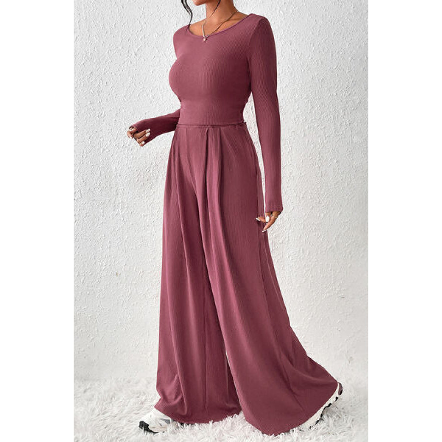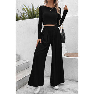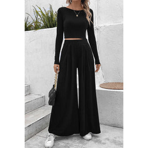 Ribbed Round Neck Top and Wide-Leg Pants Set