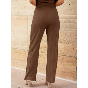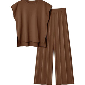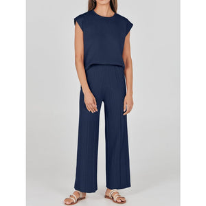 Round Neck Cap Sleeve Top and Pants Knit Set