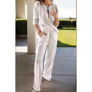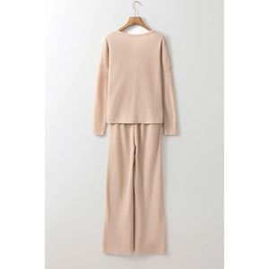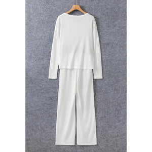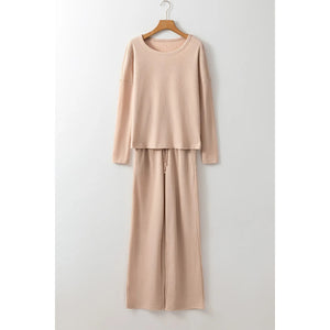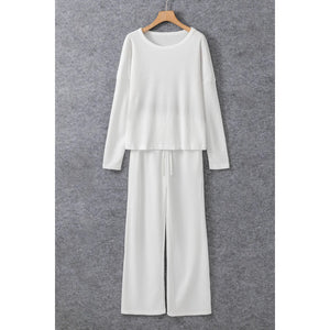Round Neck Long Sleeve Top and Drawstring Pants Lounge Set