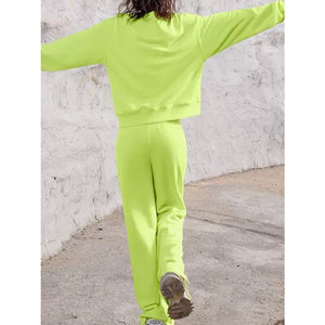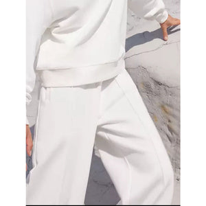 Round Neck Long Sleeve Top and Elastic Waist Pants Set