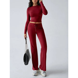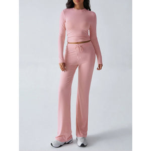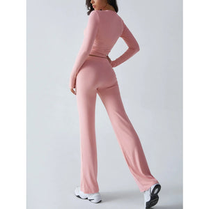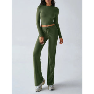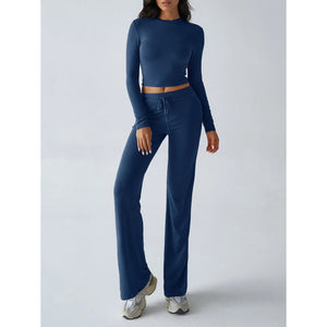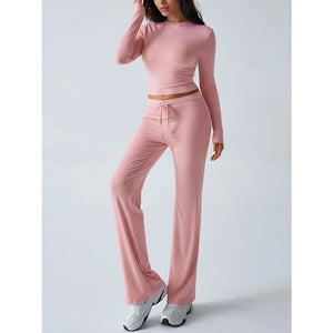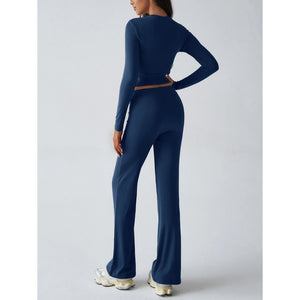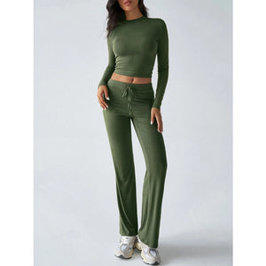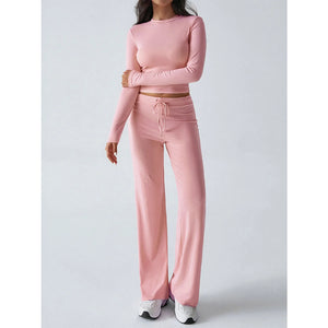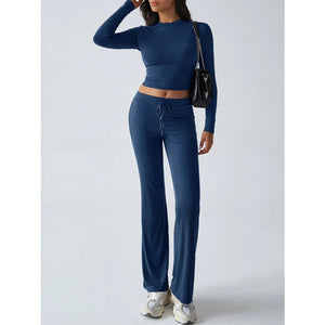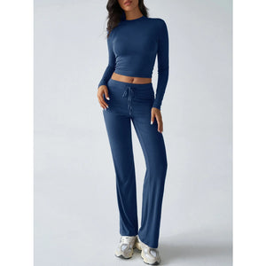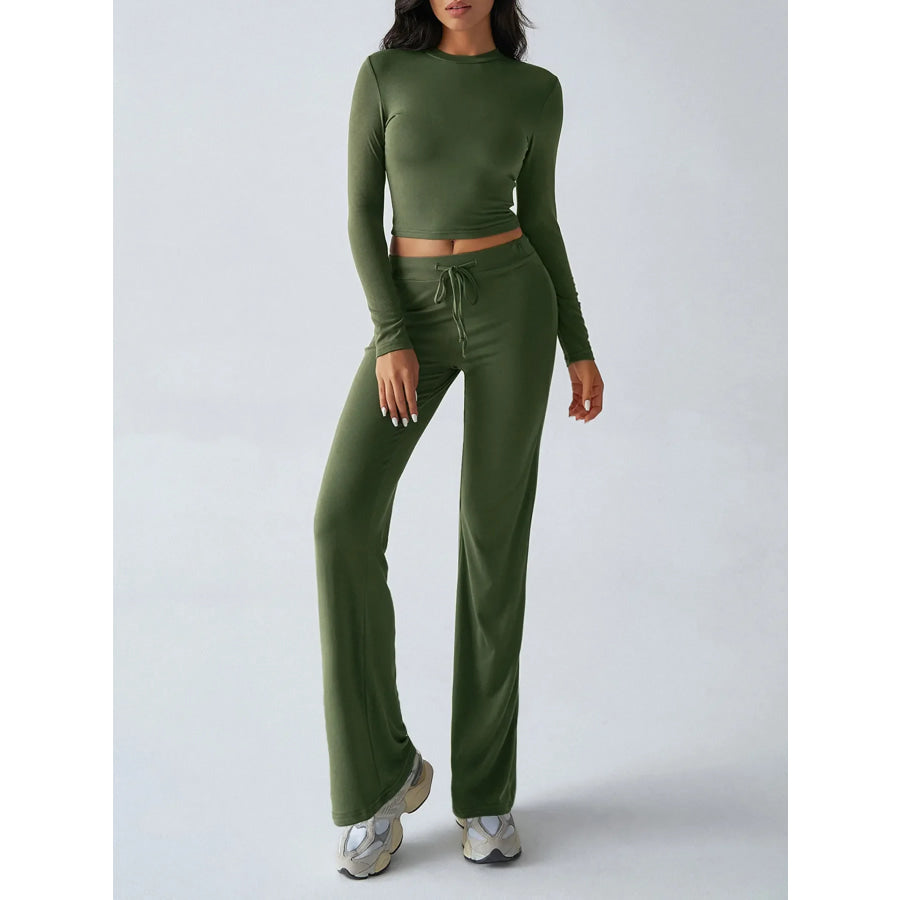 Round Neck Long Sleeve Top and Pants Set