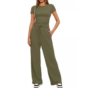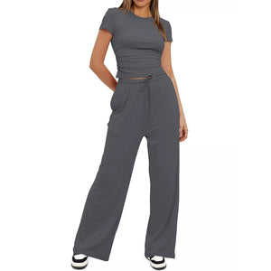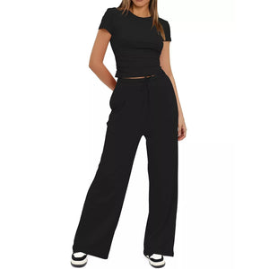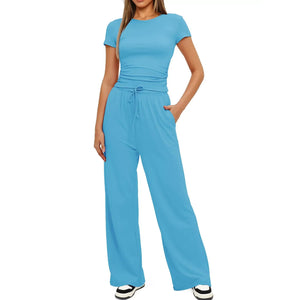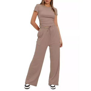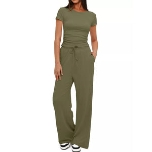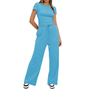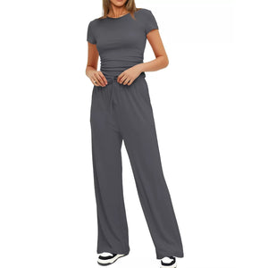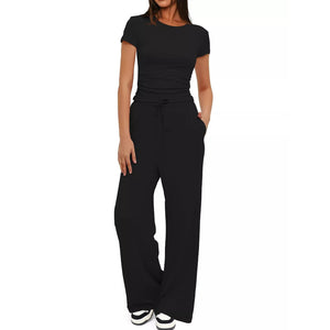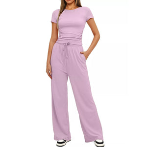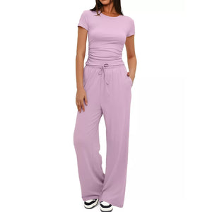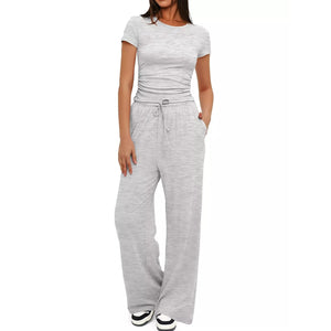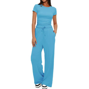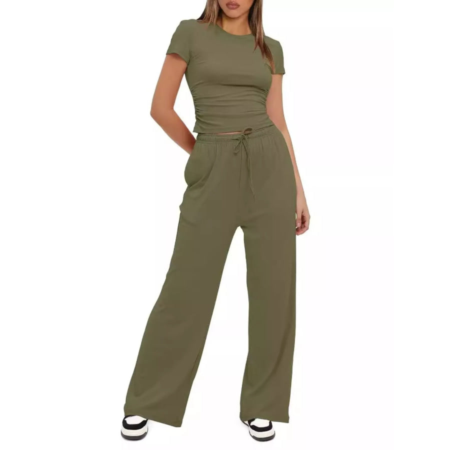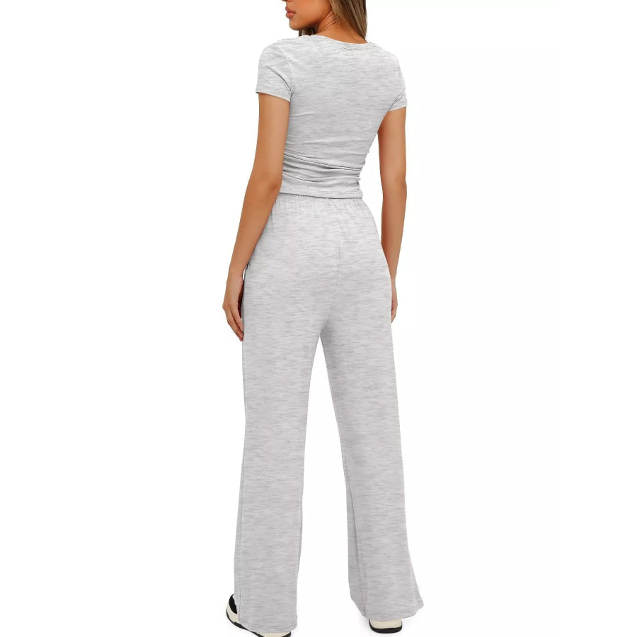 Round Neck Short Sleeve T-Shirt and Pants Set