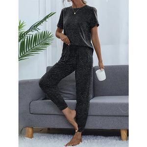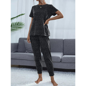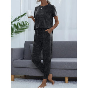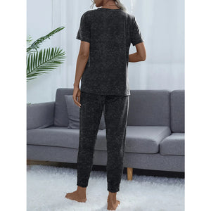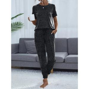 Round Neck Short Sleeve Top and Pants Lounge Set