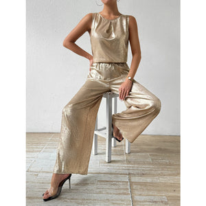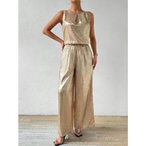 Round Neck Sleeveless Top and Pants Set