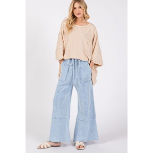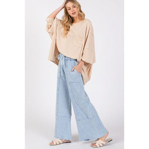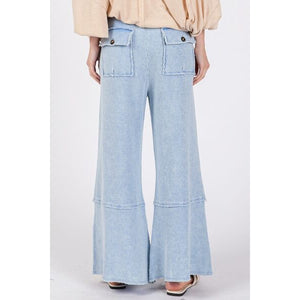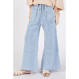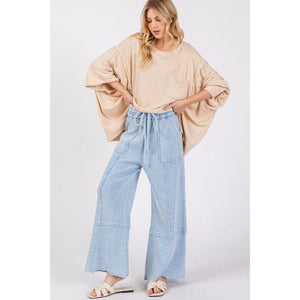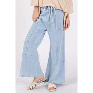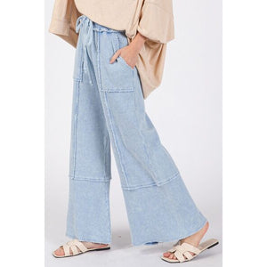 SAGE + FIG Waffle Textured Wide Leg Mineral Washed Pants
