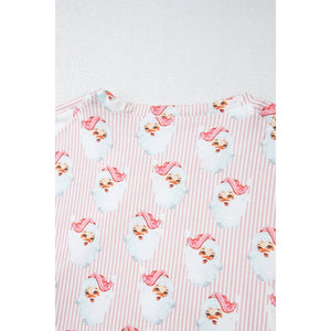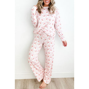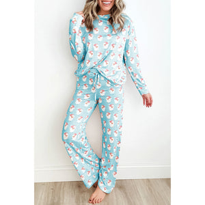 Santa Print Long Sleeve Top and Pants Lounge Set