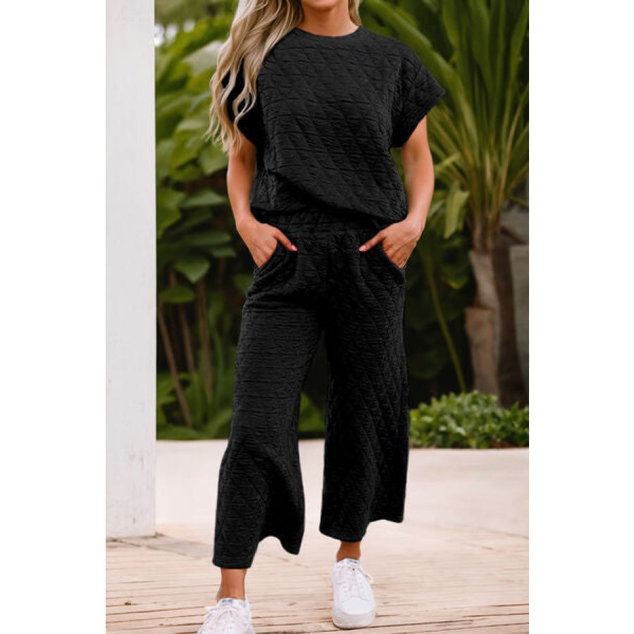 Short Sleeve Top and Pocketed Pants Lounge Set