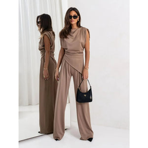 Slit Ruched Top and Wide Leg Pants Set