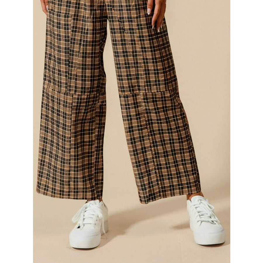 SO ME Check Plaid Wide Leg Pants with Big Patch Pockets