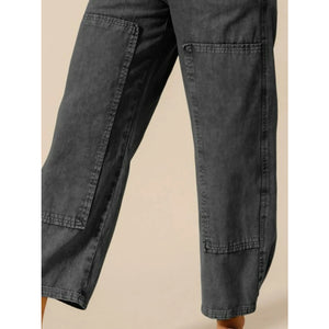 SO ME Mineral Washed Mid Rise Barrel Shape Pants