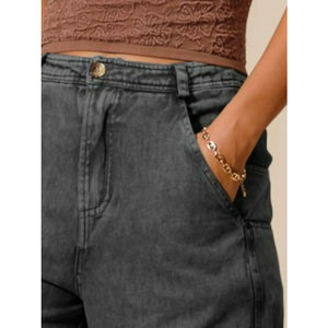 These mineral washed mid-rise pants feature a unique barrel shape design for a trendy and modern look. The mineral wash adds a cool, vintage-inspired touch to the pants. With a mid-rise waist, these pants offer a comfortable and flattering fit. Elevate your style with these edgy and fashion-forward barrel shape pants.