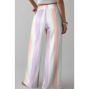 Stripe Multicolored Print Drawstring Loose Pants with Side Pockets