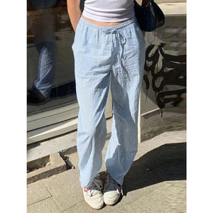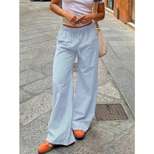 Striped Drawstring Wide Leg Pants