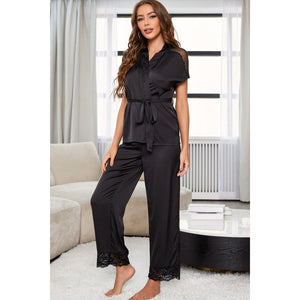 Surplice Neck Tie Waist Top and Pants Pajama Set