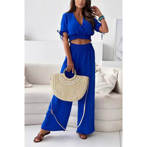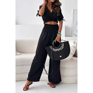 Surplice Short Sleeve Top and Pants Set