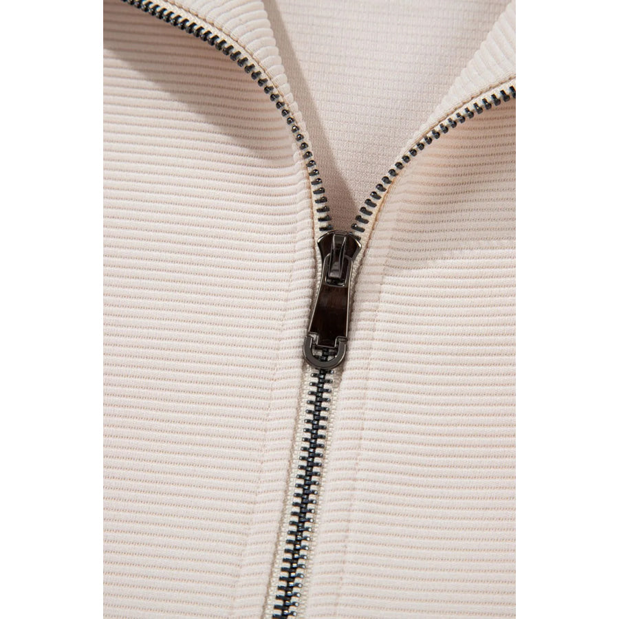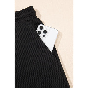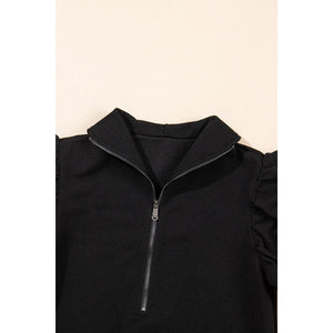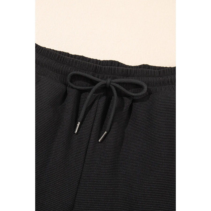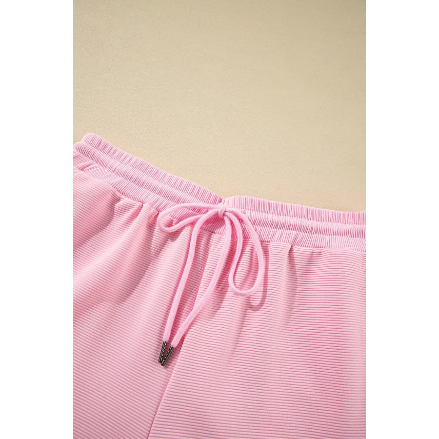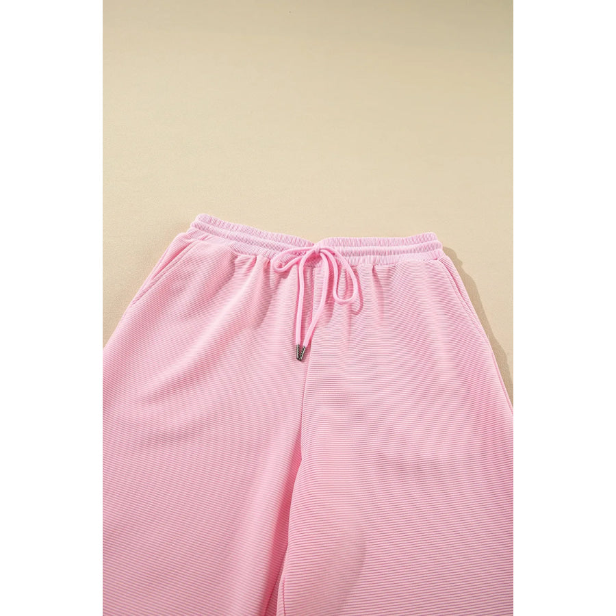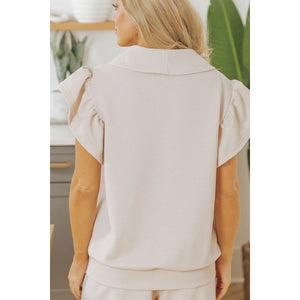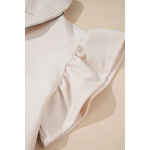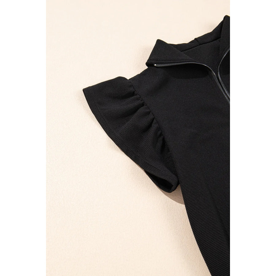 Textured Ruffled Sleeve Zipped Top and Wide Leg Pants Set