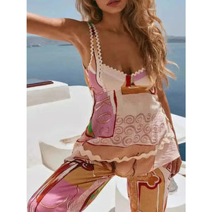 Tie Back Printed Cami and Pants Set