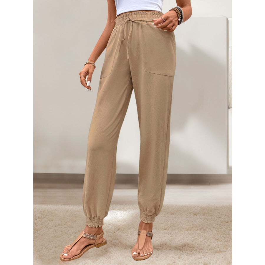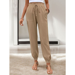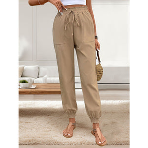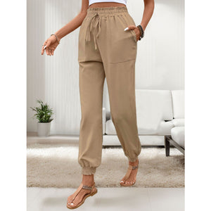 Tied Elastic Waist Pants with Pockets