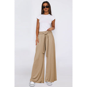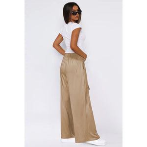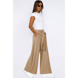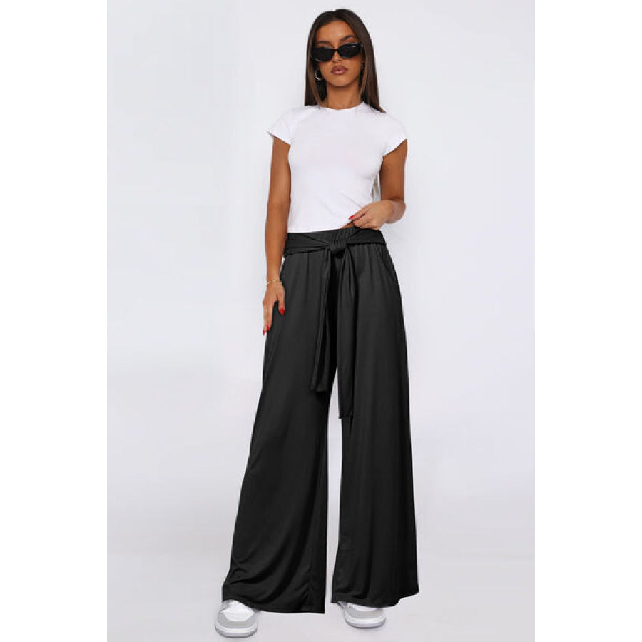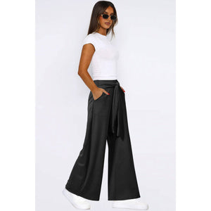 Tied Pocketed Wide Leg Pants
