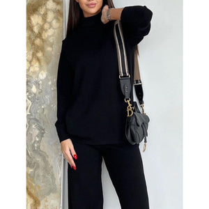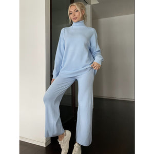 Turtleneck Long Sleeve Top and Drawstring Pants Sweater Set