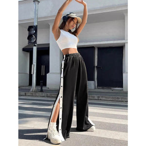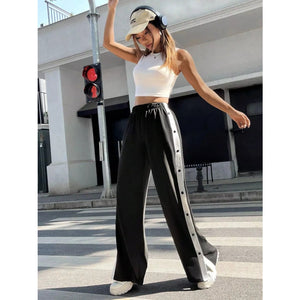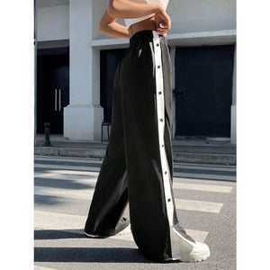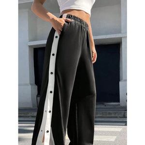 Two-Tone Side Snap Wide Leg Pants