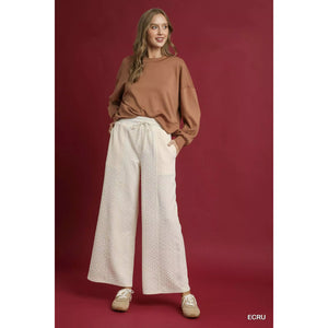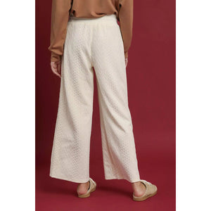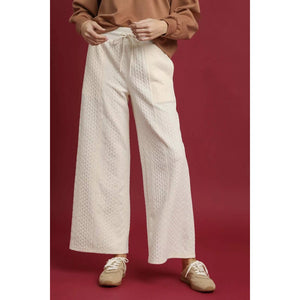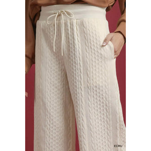 The Cable Knit Textured Wide Leg Pants are a cozy and stylish addition to your wardrobe. The cable knit texture adds a touch of warmth and visual interest to these pants. With their wide leg silhouette, they offer a comfortable and relaxed fit that is perfect for lounging or running errands. These pants are versatile and can be dressed up or down depending on the occasion. Elevate your casual chic style with these fashionable and comfortable cable knit wide leg pants.