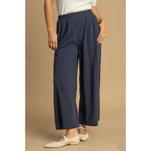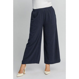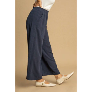 Umgee Full Size High Waisted Embellished Linen Pants Plus Size