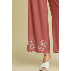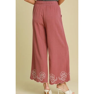 Umgee Full Size Linen Blend Wide Leg Pants with Scalloped Hemline Plus Size